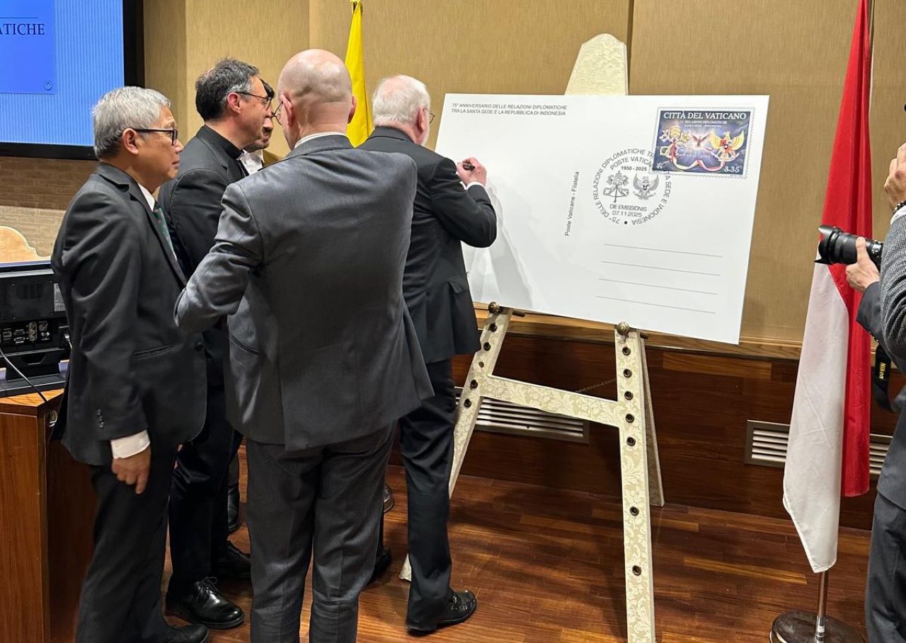 JAKARTA, DISWAYMALANG.ID–Hubungan diplomatik Indonesia dan Vatikan sudah berlangsung 75 tahun. Jumat waktu setempat, 14 November 2025, prangko khusus yang menandai relasi dua negara diluncurkan di Vatican City, ibu kota Vatikan.