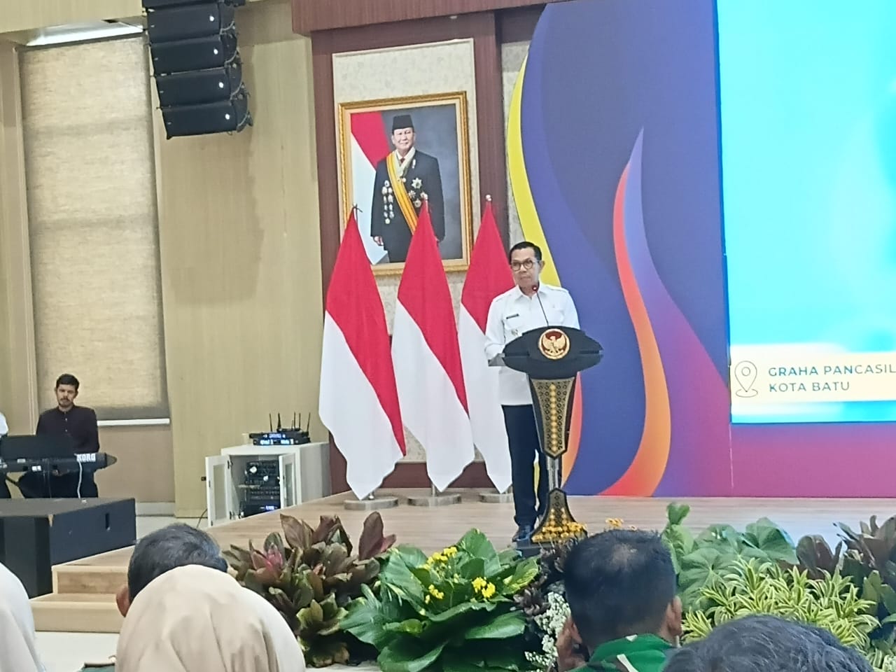 Wali Kota Batu Nurochman saat Workshop Pelatihan Perkoperasian di Gedung Pancasila Balai Kota Among Tani. -panca/diswaymalang.id --