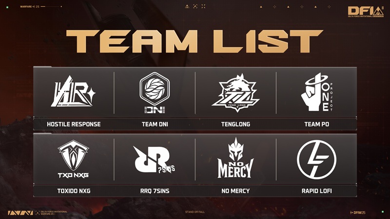 Seluruh pertandingan Delta Force Invitational Warfare 2025 akan disiarkan melalui kanal resmi Garena Delta Force mulai hari ini, 11 Desember 2025 pukul 11:30 WIB.