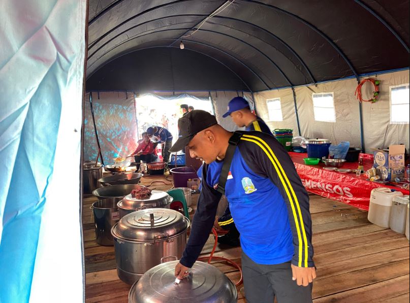 Suasana di Dapur Umum (DU) Kantor Bupati Pidie Jaya, Aceh, Kamis (11/12). -dok. tagana kota batu for disway malang--