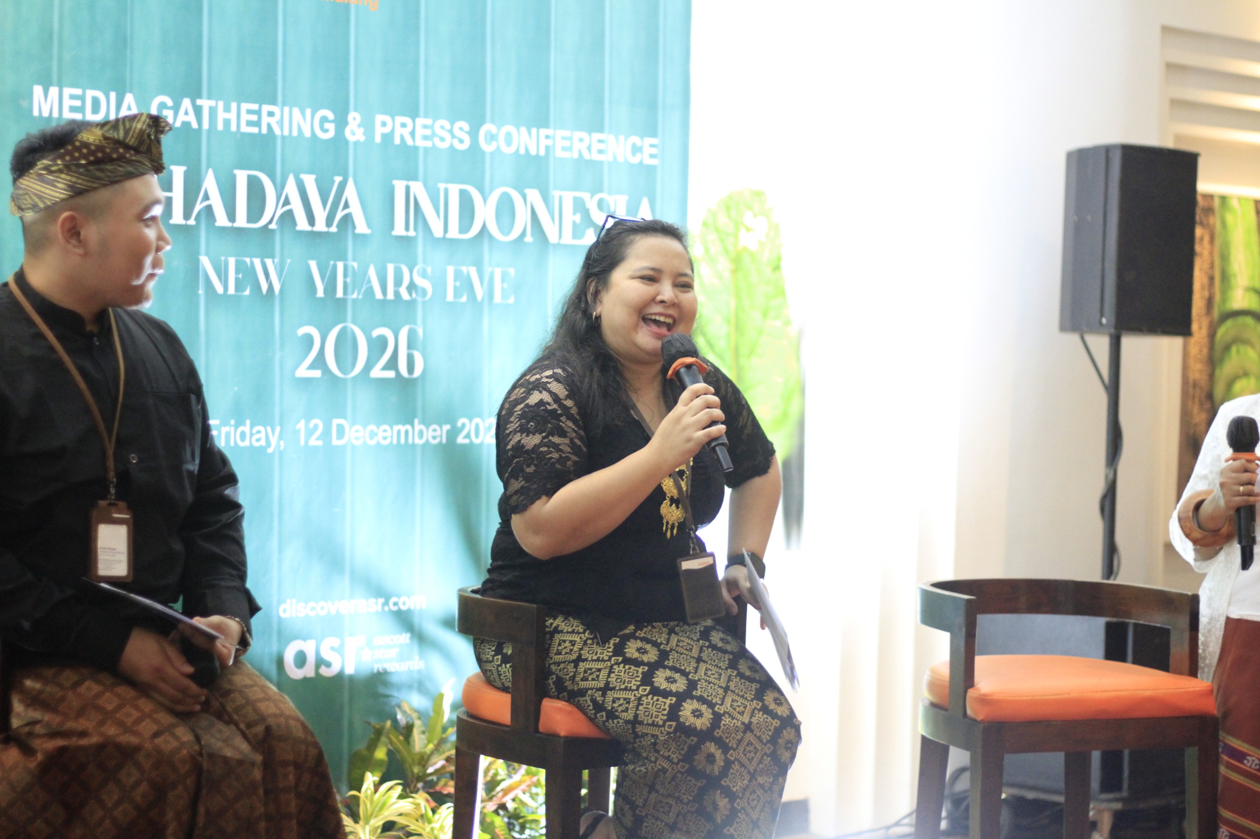 Fiki (Kiri) Brand Manager dan Fransisca (Kanan) Directur od Sales Harris Hotel and Convention Malang dalam pemaparan Mahadaya Indonesia New Years Eve 2026-Martinus Ikrar Raditya-Disway Malang