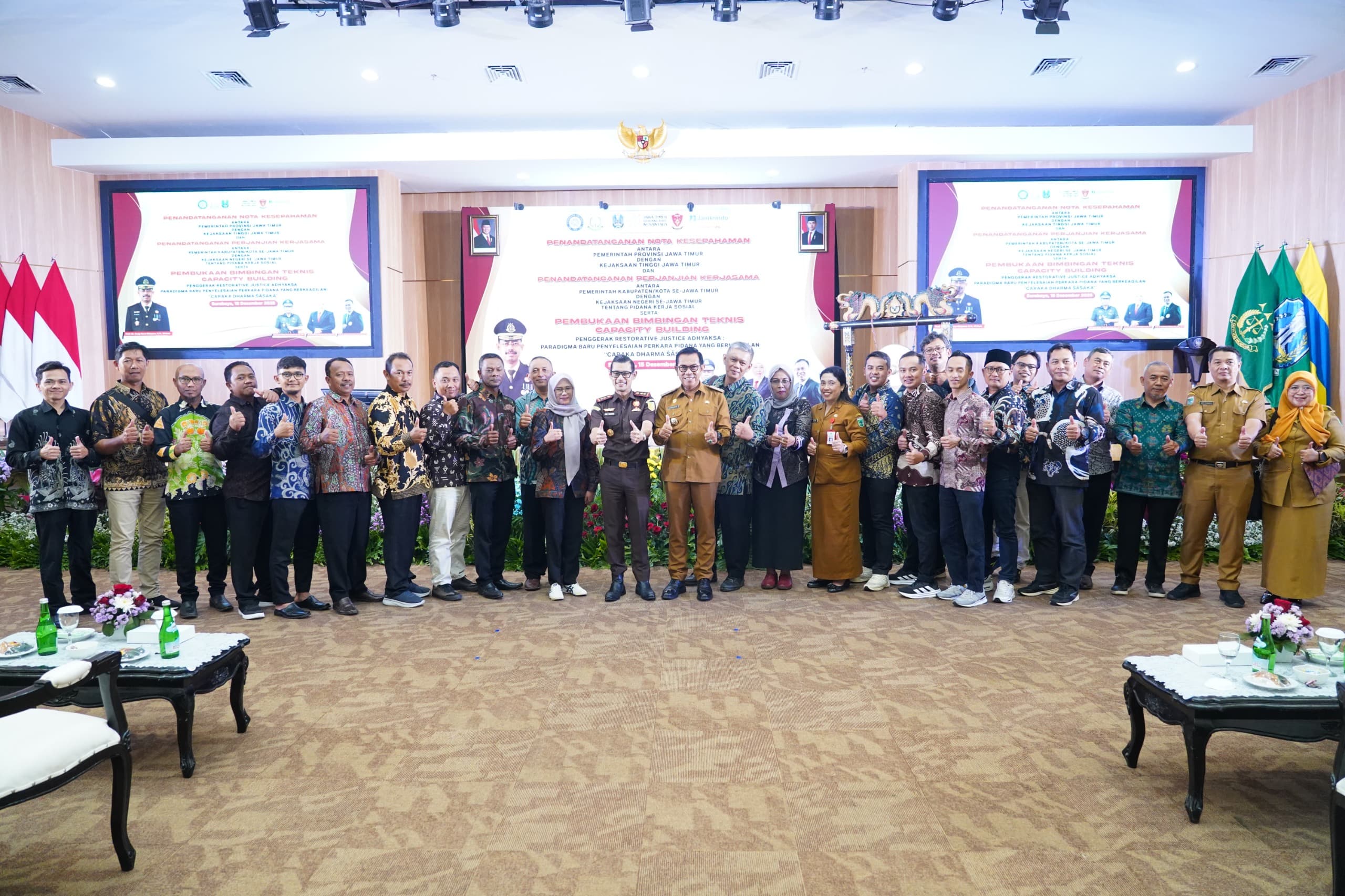Sementara itu, Gubernur Jawa Timur Khofifah Indar Parawansa dalam sambutannya menyampaikan, pidana kerja sosial merupakan kebijakan yang produktif dan selaras dengan program strategis Presiden RI. Menurutnya, peran aktif bupati dan wali kota sangat penting dalam memastikan penerapan restorative justice berjalan efektif di daerah.