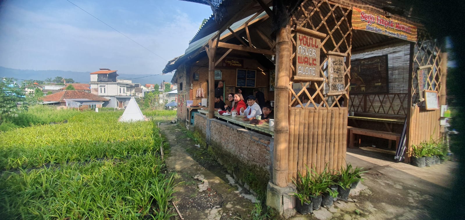 BATU, DISWAYMALANG.ID--Sego empok Prasmanan Mewah (mepet sawah) di Dusun Suko Rembug, Desa Sidomulyo, Kota Batu, baru lima bulan jualan sejak Juli 2025. Namun warung ini menjadi jujugan para pecinta kuliner tradisional di Kota Batu.