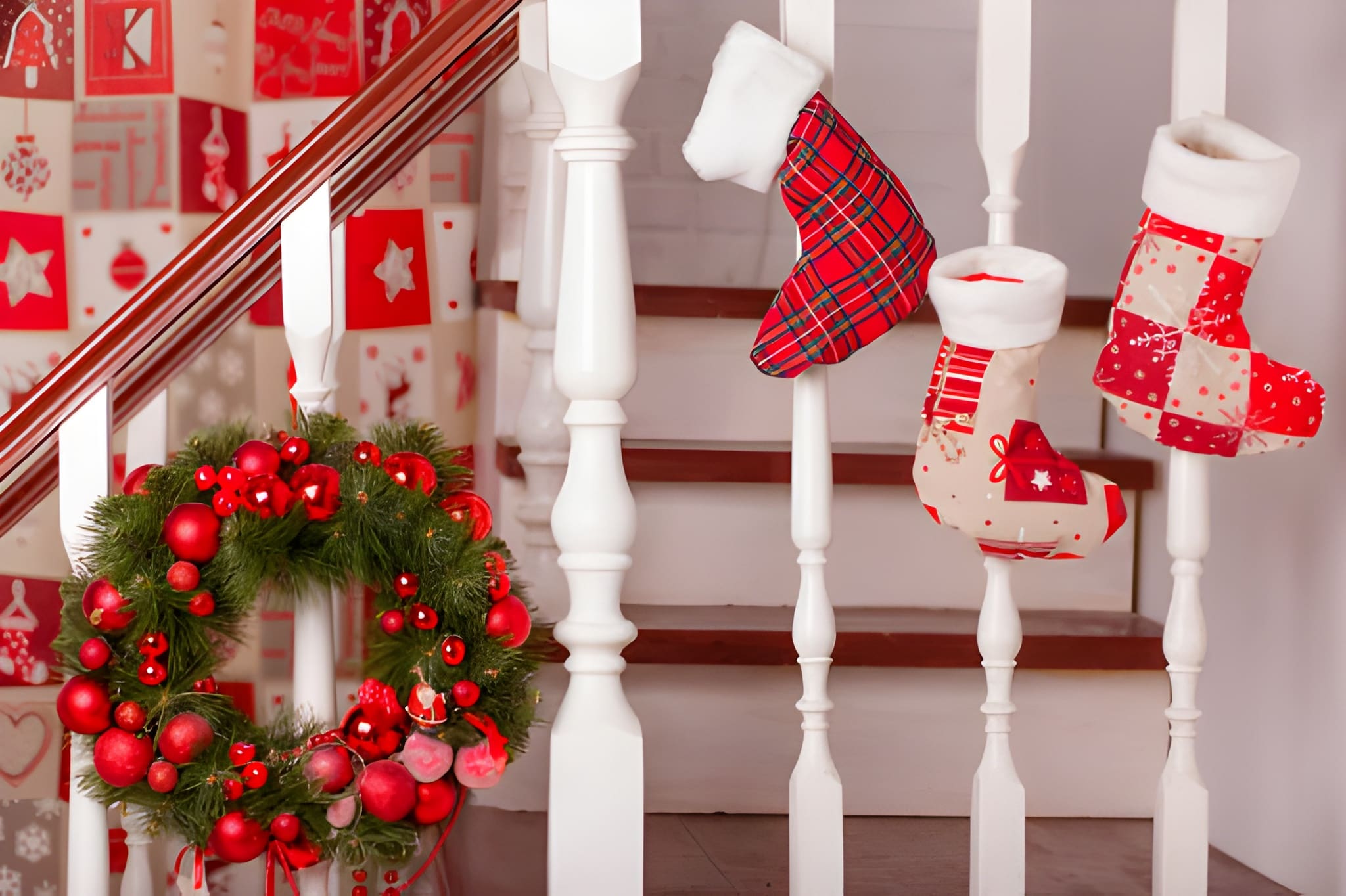 STOKING Natal di tangga mempercantik ruang sambil memberi sentuhan hangat khas perayaan keluarga. --iStock--