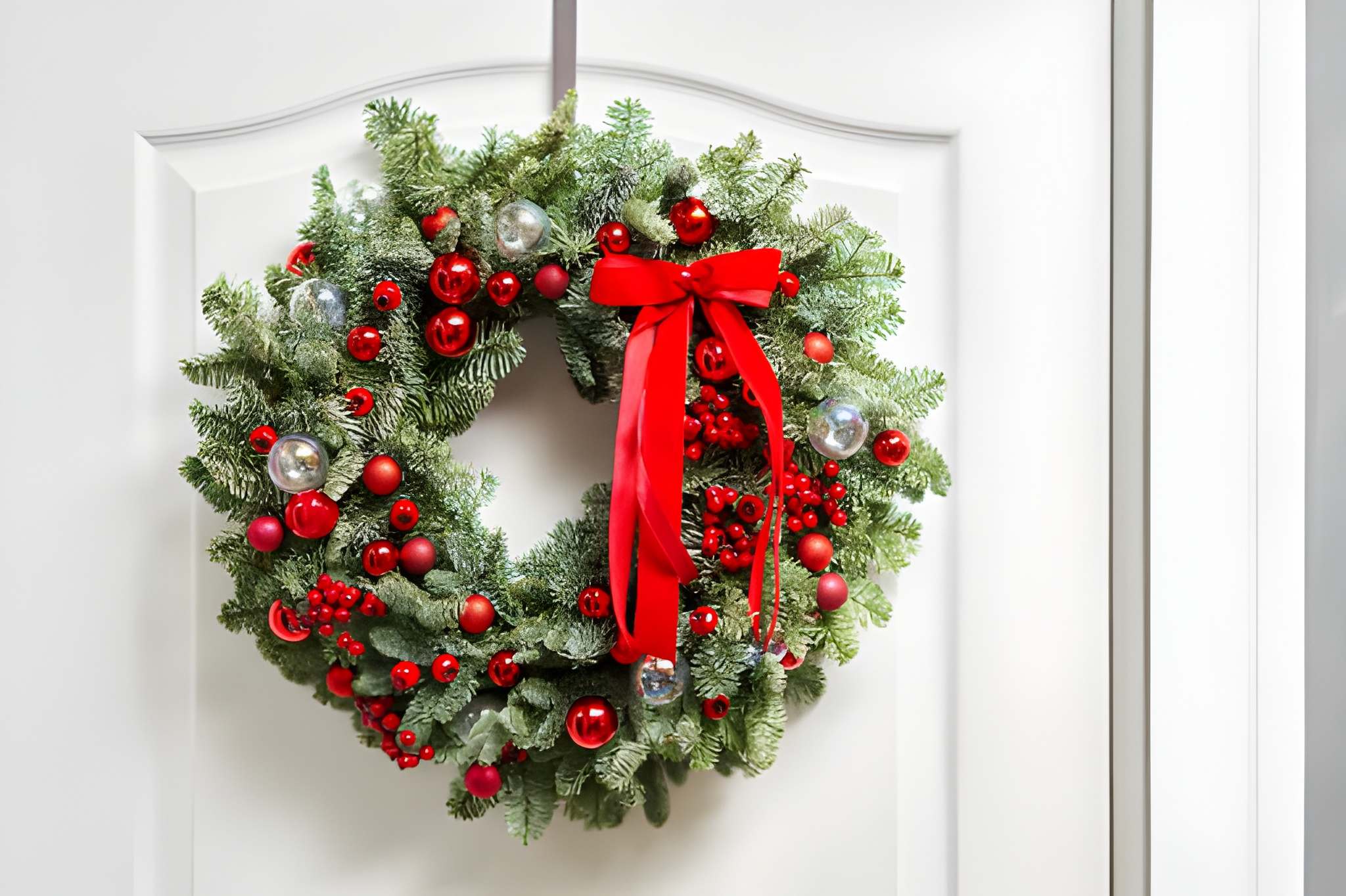 Wreath selalu berhasil menambah kesan hari raya Natal sejak pertama kali seseorang melangkah ke rumah. Pilihan yang umum antara lain pine yang klasik, eucalyptus yang segar, atau red berry untuk aksen warna.