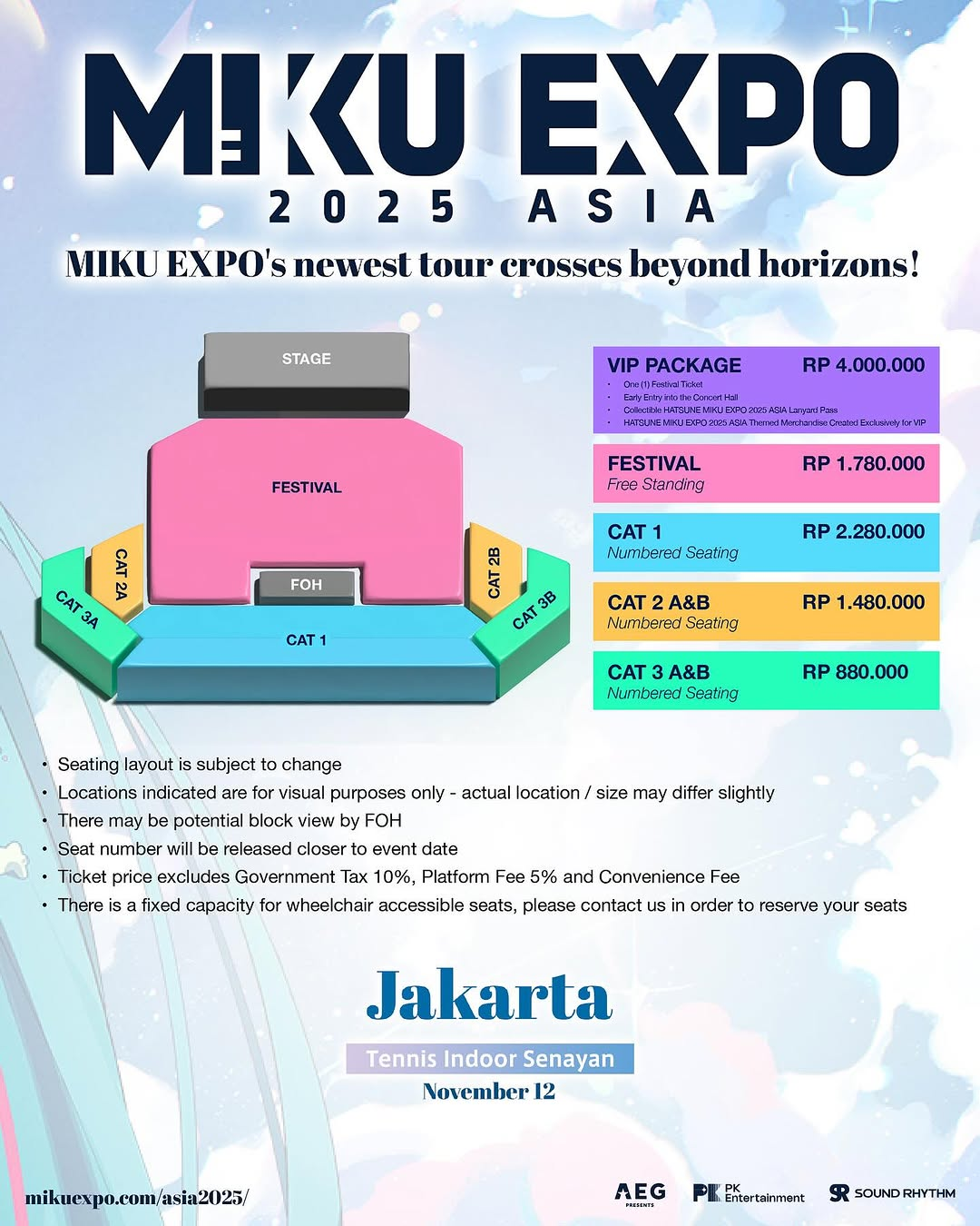 Berikut daftar harga tiket lengkap MIKU EXPO 2025 di Jakarta, dilansir dari website resminya: