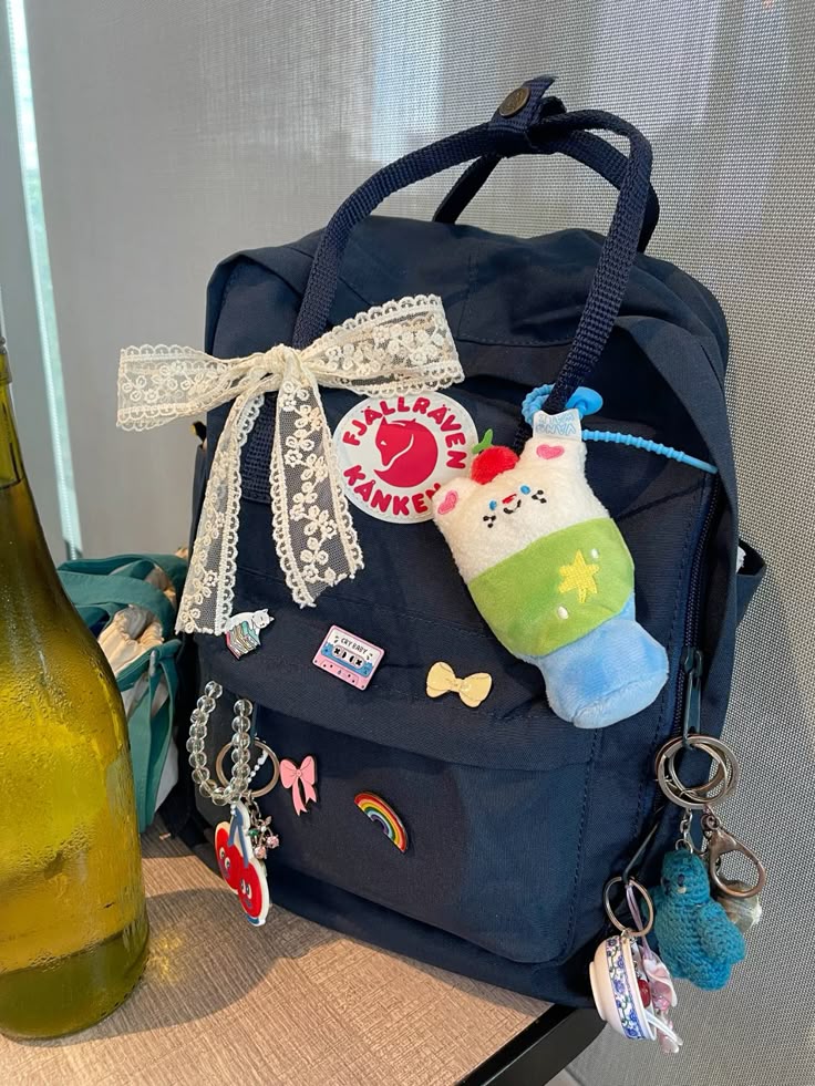 Supaya tas kamu nggak terlihat monoton, coba kombinasikan berbagai tekstur. Misalnya plushie lembut dipadukan dengan charm akrilik bening atau metal charm yang shiny. Campuran tekstur yang tepat bisa membuat penampilan lebih menarik tanpa harus ribet.