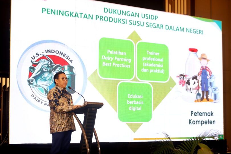 Dukungan penuh terhadap program ini juga datang dari pemerintah. Direktur Jenderal Peternakan dan Kesehatan Hewan Kementerian Pertanian, drh. Agung Suganda, M.Sc., dalam sambutannya menyampaikan bahwa program seperti USIDP sangat penting untuk mendorong transformasi industri peternakan nasional. “Kami terus mendorong pelatihan dan penguatan peternakan sapi perah agar manajemen pemeliharaannya lebih baik, mulai dari aspek air, nutrisi, hingga perawatan hewan yang berbasis teknologi,” ungkap Agung.