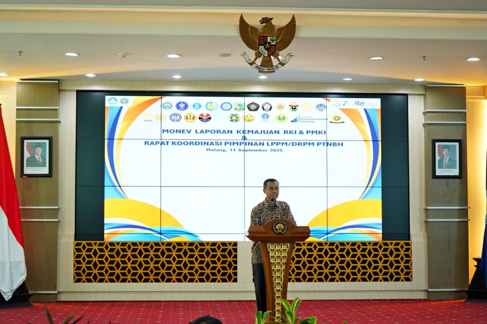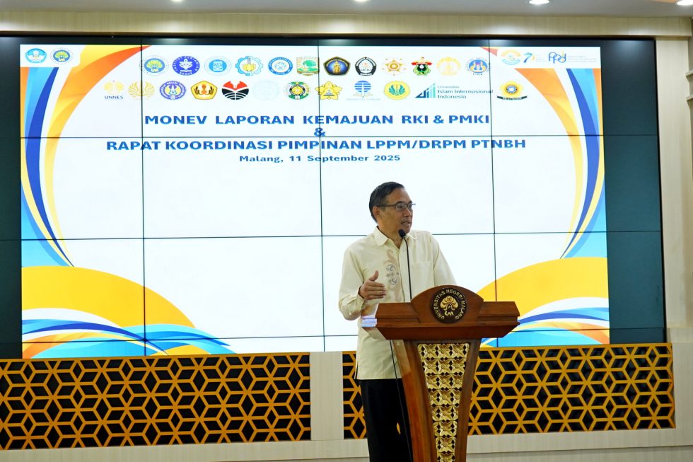 LOWOKWARU, DISWAYMALANG.ID--Universitas Negeri Malang (UM) melalui Lembaga Penelitian dan Pengabdian Masyarakat (LPPM) menjalin kerja sama dengan 24 Perguruan Tinggi Negeri Berbadan Hukum (PTN-BH) di Indonesia dalam rangka memperkuat riset dan pengabdian masyarakat. Kolaborasi tersebut diwujudkan dalam kegiatan monitoring dan evaluasi Laporan Kemajuan Riset Kolaborasi Indonesia (RKI) serta Pengabdian Masyarakat Kolaborasi Indonesia (PMKI) yang berlangsung pada Kamis (11/9).