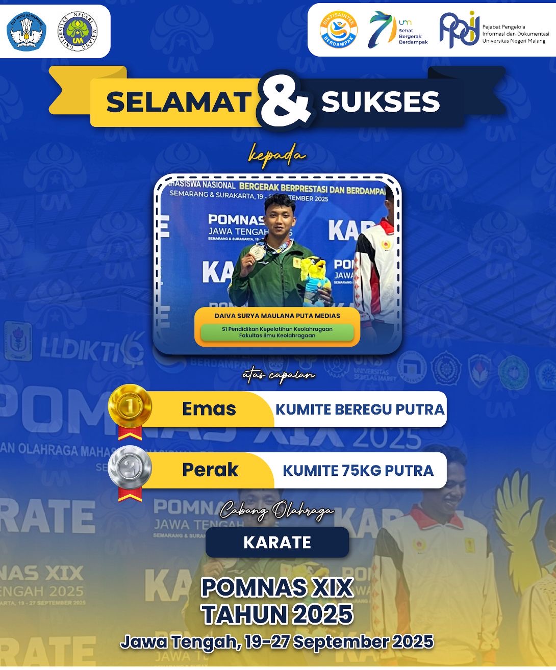 “Prestasi ini adalah bukti nyata bahwa mahasiswa UM tidak hanya unggul dalam bidang akademik, tetapi juga mampu bersaing di level nasional melalui olahraga. Kami bangga dan akan terus memberikan dukungan agar mahasiswa dapat mengembangkan potensinya di berbagai bidang,” ujar Hariyono dalam keterangannya, Sabtu (4/10).