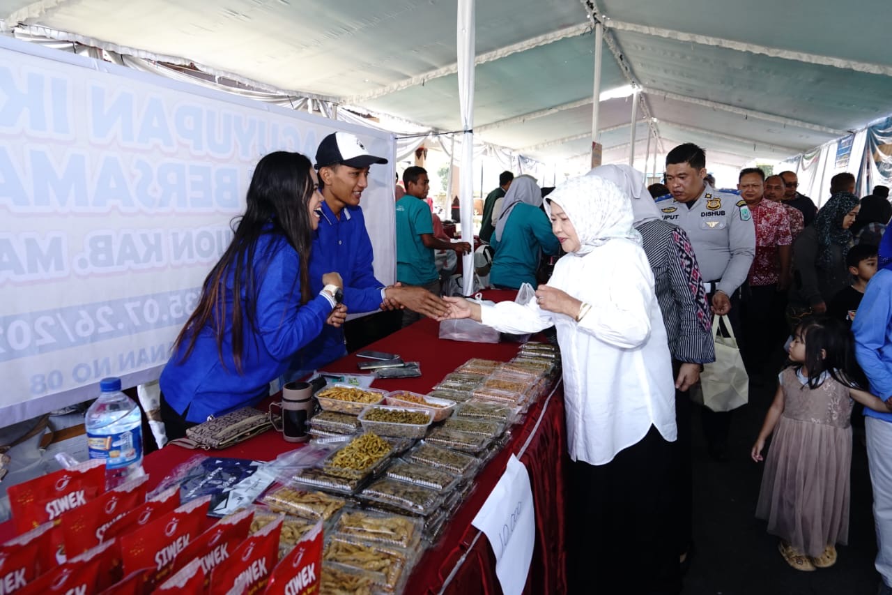 Wabup Malang Lathifah meninjau stand pasar murah UMKM di arena Pasar Murah di Kecamatan Pujon. -istimewa/pemkab malang--