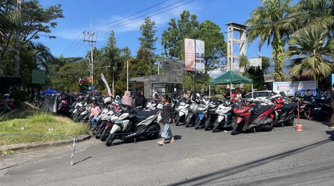 Pantauan di lokasi, area parkir kendaraan roda dua tampak penuh dengan deretan sepeda motor yang memenuhi sisi jalan. Hal ini menunjukkan tingginya jumlah pengunjung yang datang ke kawasan CFD tersebut.