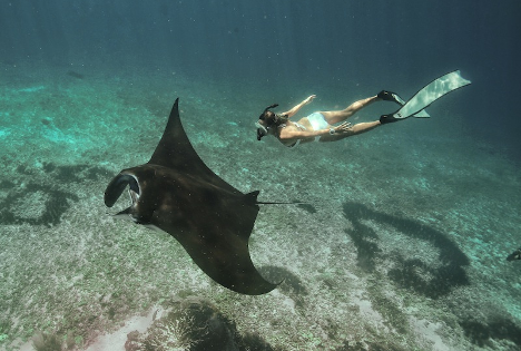 Sementara di Manta Bay, snorkeler bisa berjumpa dengan pari manta raksasa yang berenang di perairan dangkal. Perpaduan laut biru dan tebing kapur menjadikan pengalaman snorkeling di sini sangat dramatis.