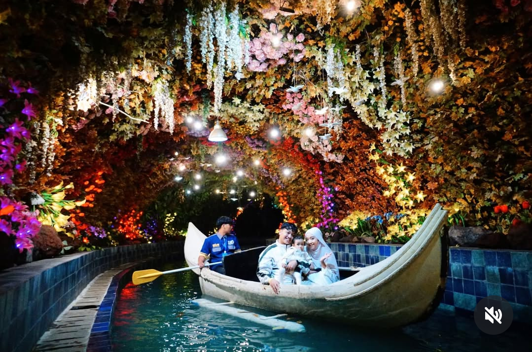 Bila siang terasa terlalu panas, Malang Night Paradise bisa jadi pilihan. Wisata malam ini menghadirkan taman lampion, zona edukasi dinosaurus, hingga wahana air Glow Garden yang berpendar di malam hari.