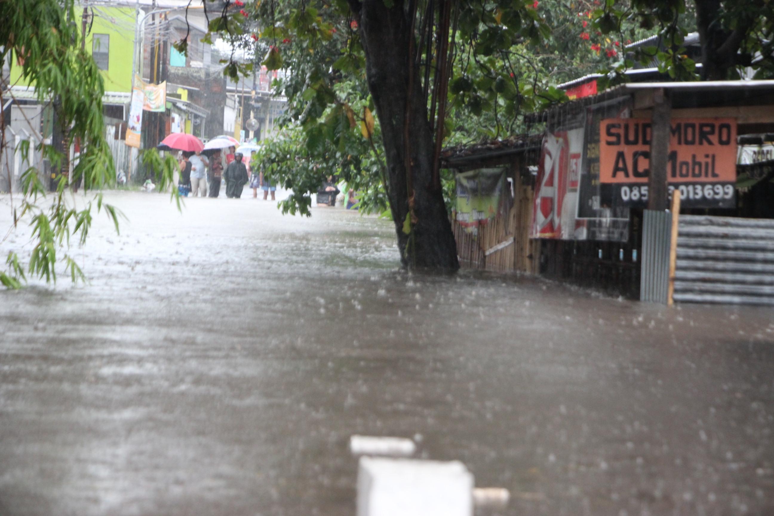 Meski intensitas hujan mulai menurun setelah pukul 15.00 WIB, genangan air masih mengalir deras menuju Jalan Sudimoro. Wilayah ini kembali terendam karena menerima aliran dari dua arah, yakni dari sungai sekitar permukiman serta limpasan air dari Suhat. Ketinggian air di Sudimoro bahkan mencapai sekitar 1,5 meter lebih.