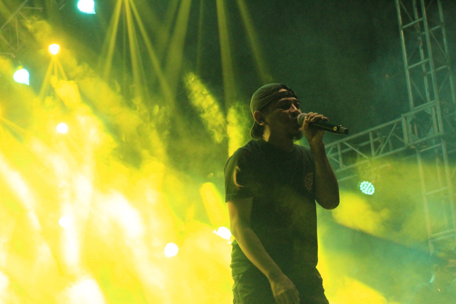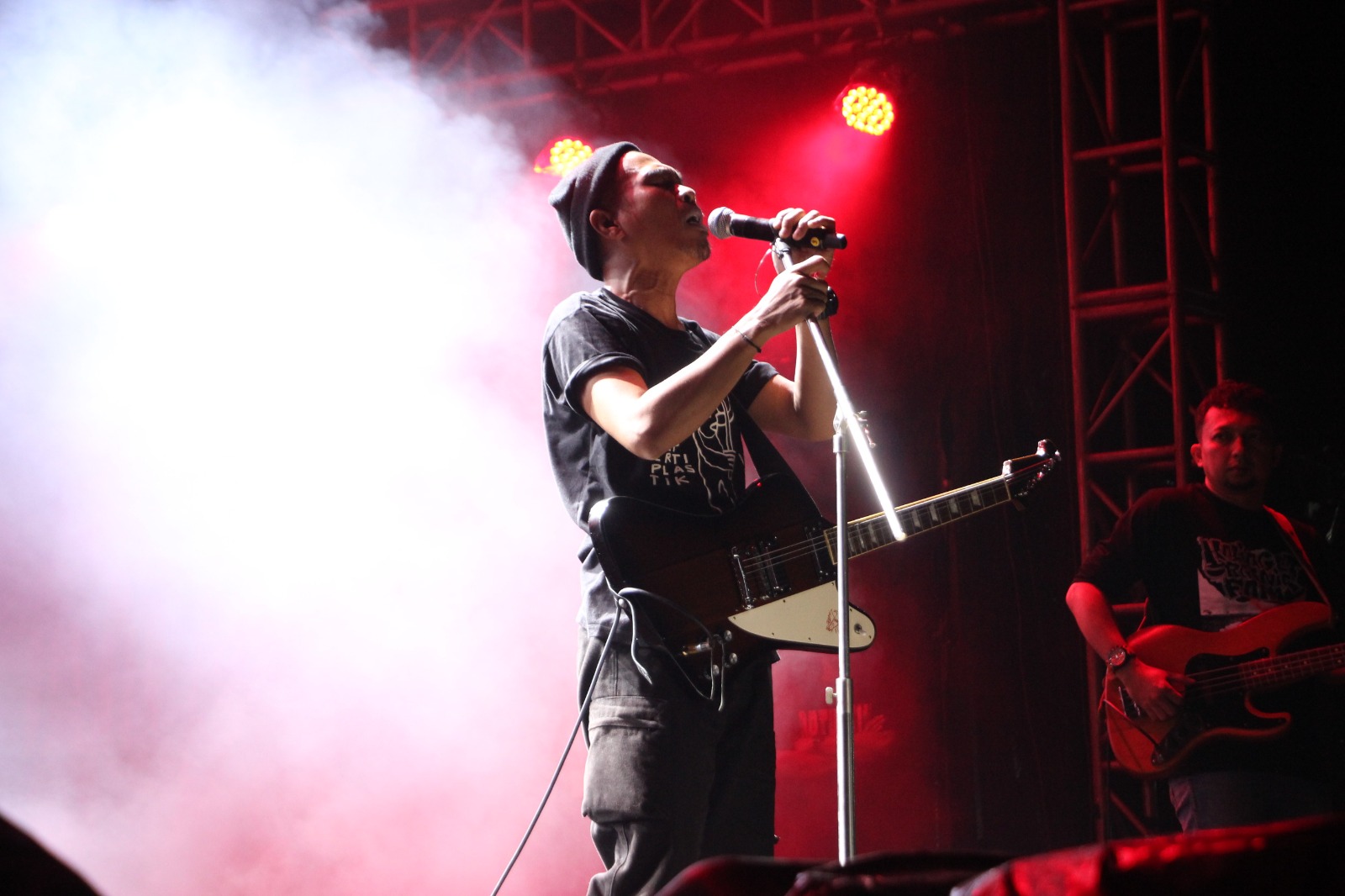 Selepas jeda singkat, energi lapangan berubah drastis ketika Vespherya, band metal asal Malang, naik ke panggung. Dentuman distorsi dan raungan vokal membuat crowd membesar signifikan. Moshpit terbentuk, namun tetap dalam kontrol solidaritas yang keras tanpa kehilangan tujuan.
