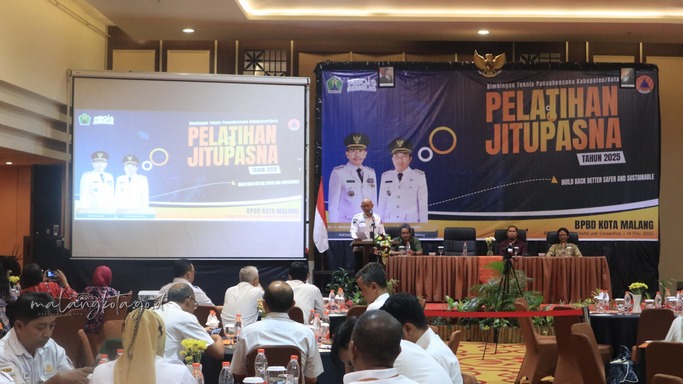 MALANG, DISWAYMALANG.ID-- Sebagai langkah nyata memperkuat sistem penanggulangan bencana berbasis data, Badan Penanggulangan Bencana Daerah (BPBD) Kota Malang menggelar pelatihan JITUPASNA (Pengkajian Kebutuhan Pascabencana) di Ascent Premiere Hotel and Convention, Rabu (14/5). Kegiatan ini melibatkan perwakilan dari perangkat daerah, kecamatan, kelurahan, hingga Tim Penggerak PKK sebagai peserta pelatihan.