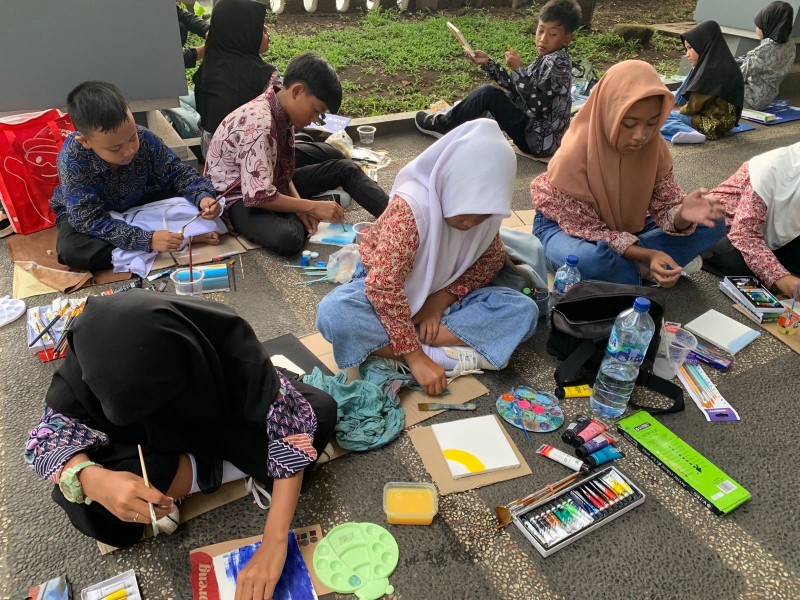 Lebih dari sekadar pameran, kegiatan ini juga menjadi ruang belajar. Anak-anak yang tergabung dalam komunitas diberikan sesi latihan langsung dari seniman senior Sukoi. Mereka diajarkan teknik melukis, pemahaman warna, hingga cara menyampaikan pesan melalui gambar.