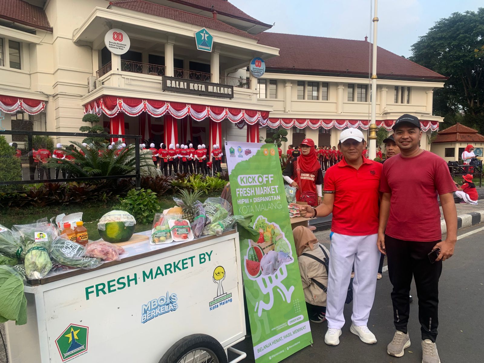 KLOJEN, DISWAYMALANG.ID – Pemerintah Kota Malang resmi meluncurkan program HIPMI Fresh Market yang digagas oleh Himpunan Pengusaha Muda Indonesia (HIPMI) Kota Malang bekerja sama dengan Dinas Pertanian dan Ketahanan Pangan (Dispangtan). Kick off program ini digelar di halaman Balai Kota Malang, Jumar (8/8), dipimpin Wali Kota Malang, Wahyu Hidayat.