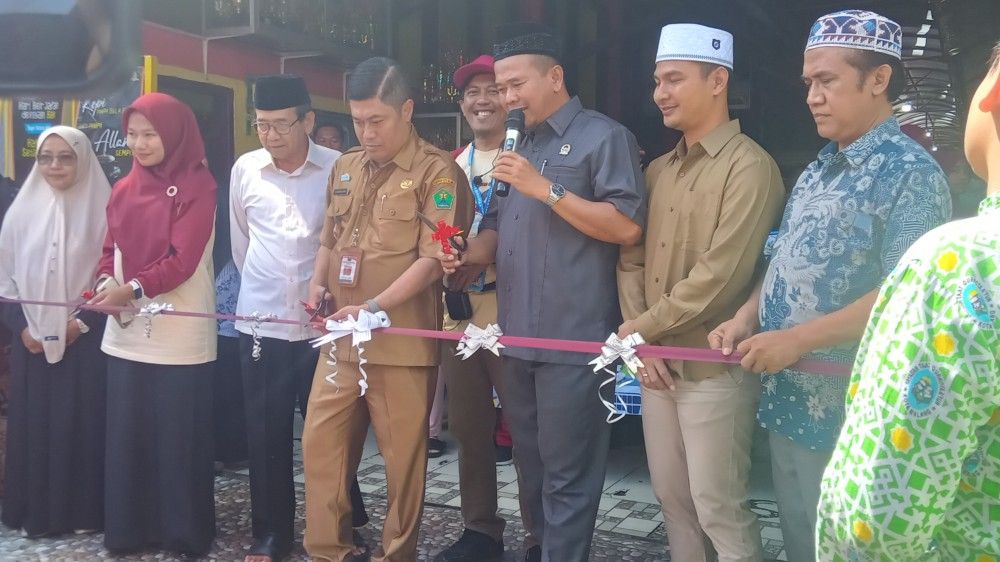 Proses gunting pita oleh Ustadz Dewan Rokhmad dan Kadisdikbud Kota Malang, Islamic Tour to Jakarta by Plane Selasa (25/11)--malang.disway.id