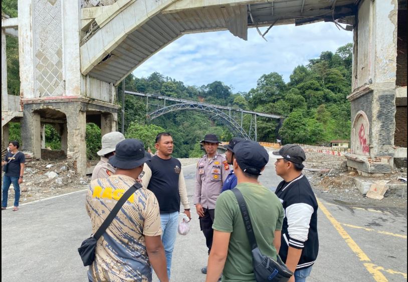 Momen paling mengharukan terjadi menjelang kepergian tim dari lokasi. Empat rekan satu letting Ipda Angga, yang dikenal dari Tim Ojoloyo Satuan Reserse Narkoba Polres Kampar, berdiri di atas jembatan. Mereka menaburkan bunga ke derasnya aliran Sungai Batang Anai, sebuah salam perpisahan yang didampingi isak tangis yang tertahan.