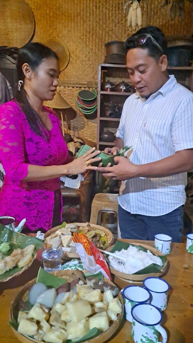 Agenda dimulai dengan santap Sego Berkat, lengkap dengan lauk ayam, urap, tahu, tempe, serta sambal, yang disajikan dalam besek beralaskan daun pisang. Mereka juga dikenalkan dengan polo pendem—singkong, ketela ungu, hingga gembili rebus—yang sarat makna kesederhanaan. Sejumlah jajanan pasar seperti klepon, cenil, lopis, dan horog-horog turut melengkapi pengalaman kuliner.