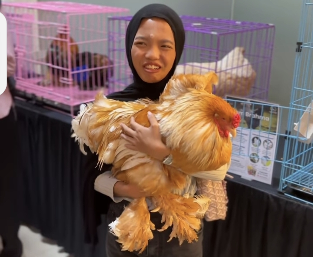 Ayam Brahma yang besarnya melebihi manusia, salah satu yang dipamerkan dalam Pameran Ayam dan Merpati Hias Fapet UB--ig fapet UB