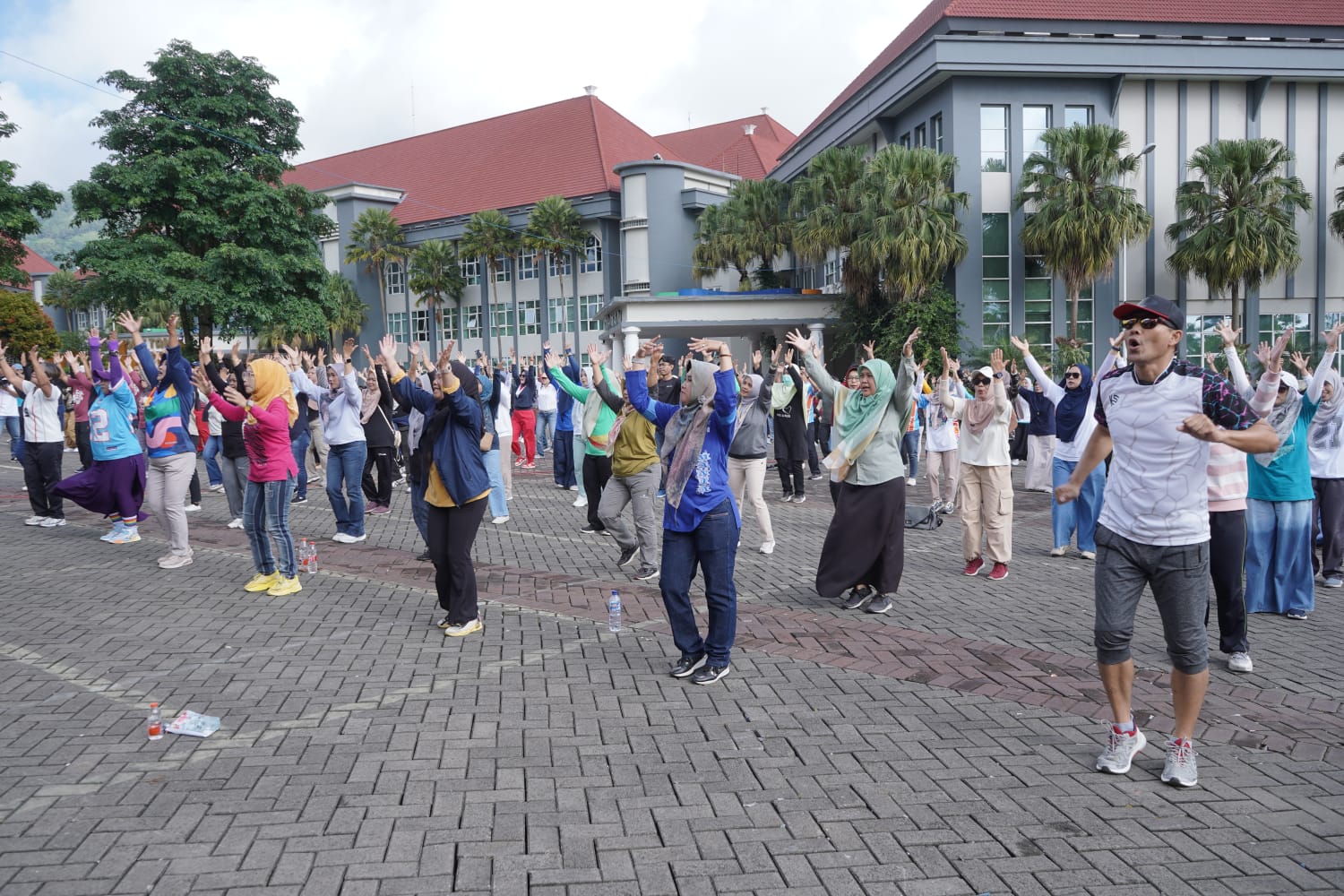 Senam bersama memperingati Hari Korpri di parkir timur Balai Kota Among Tani, Kota Batu, Jumat (5/12). -panca/diswaymalang.id--