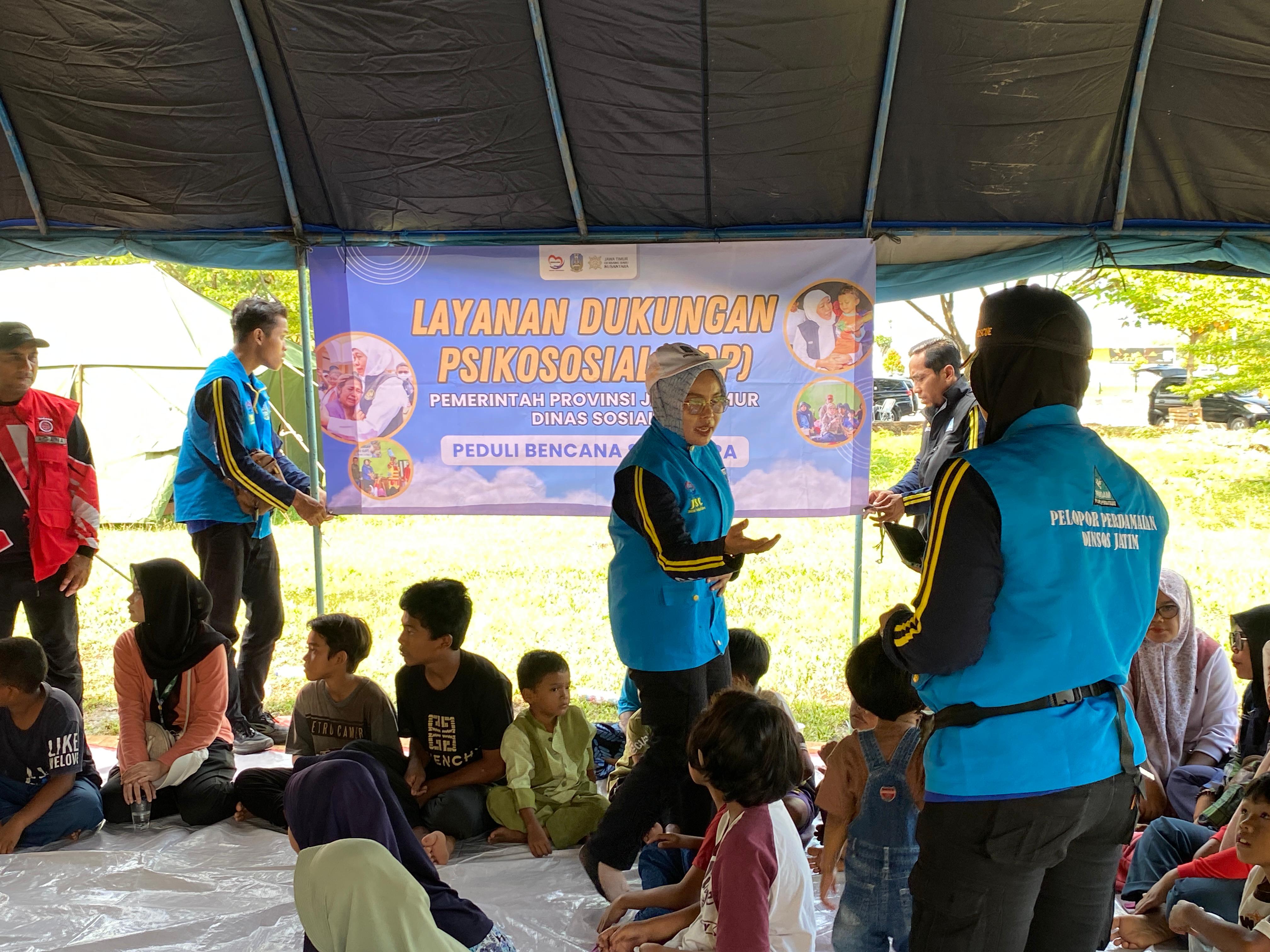 PIDIE JAYA, DISWAYMALANG.ID--Taruna siaga bencana (Tagana) tidak hanya menangani dapur di daerah bencana Pidie Jaya, Aceh. Tagana di bawah Dinas Sosial Jawa Timur juga mebawa tim relawan psikologi sosial, dengan nama Layanan Dukungan Psikososial (LDP).