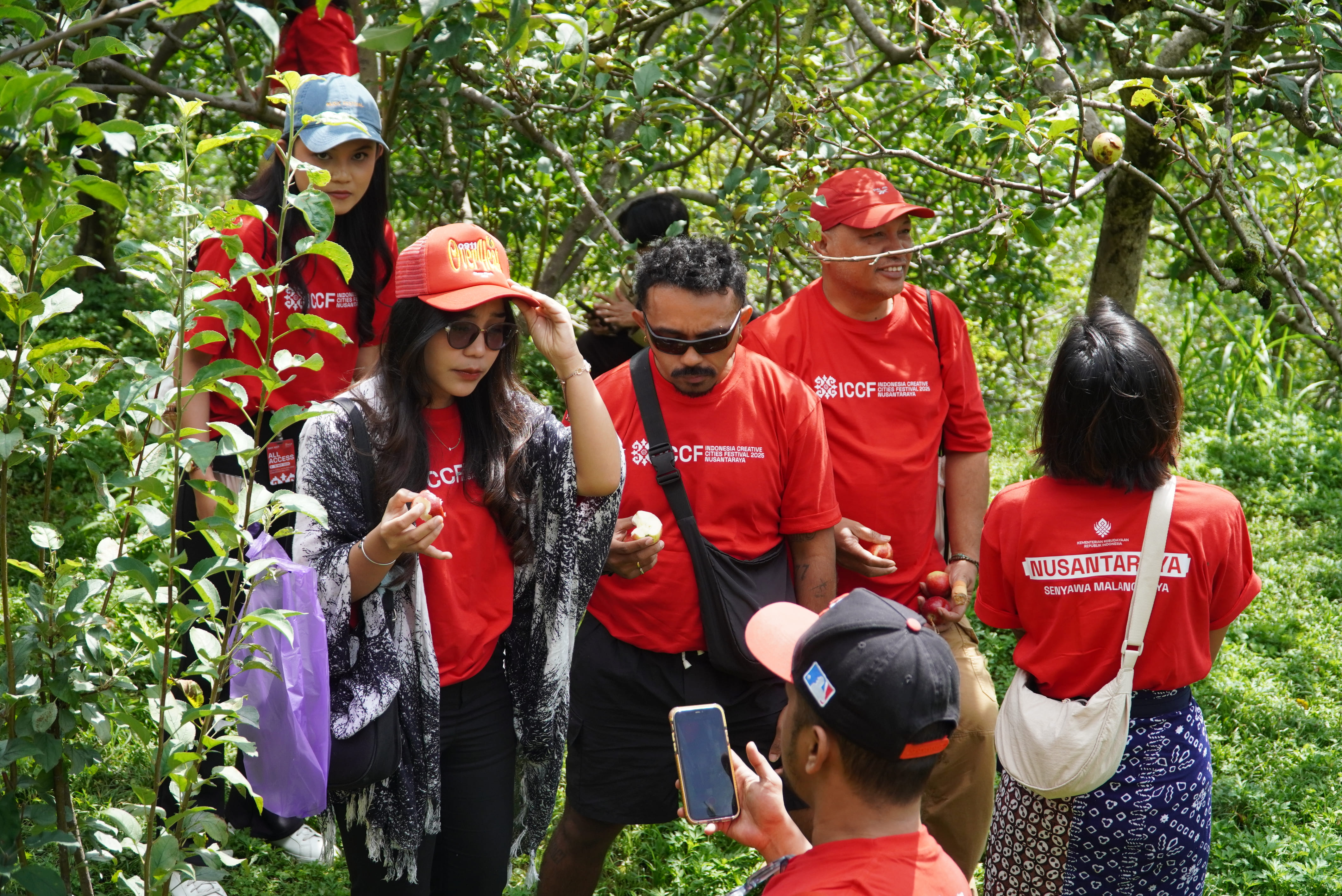 Sejak pagi, para delegasi ICCF dari berbagai kota kreatif di Indonesia tampak antusias menyusuri kebun apel di kawasan wisata petik apel Kota Batu. Mereka menikmati pengalaman memetik apel langsung dari pohon, sembari menikmati panorama kebun yang hijau dan udara sejuk khas pegunungan.