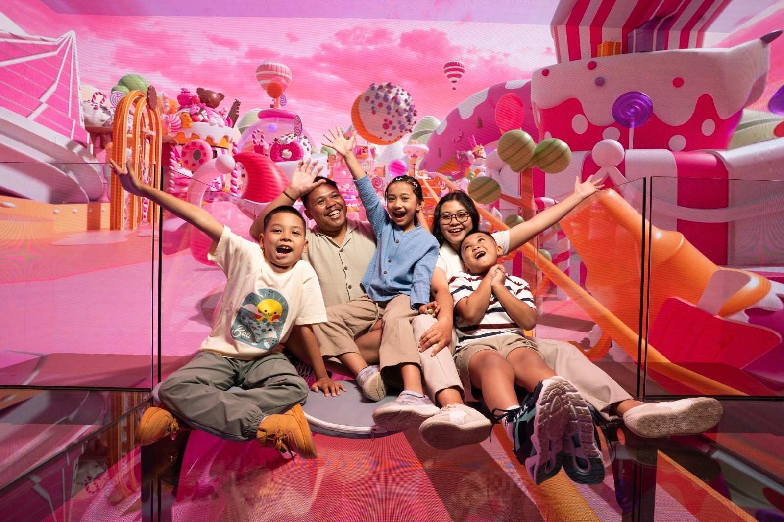 Dunia permen penuh warna dengan efek hujan permen yang menciptakan sensasi fantasi menyenangkan untuk anak-anak maupun keluarga.