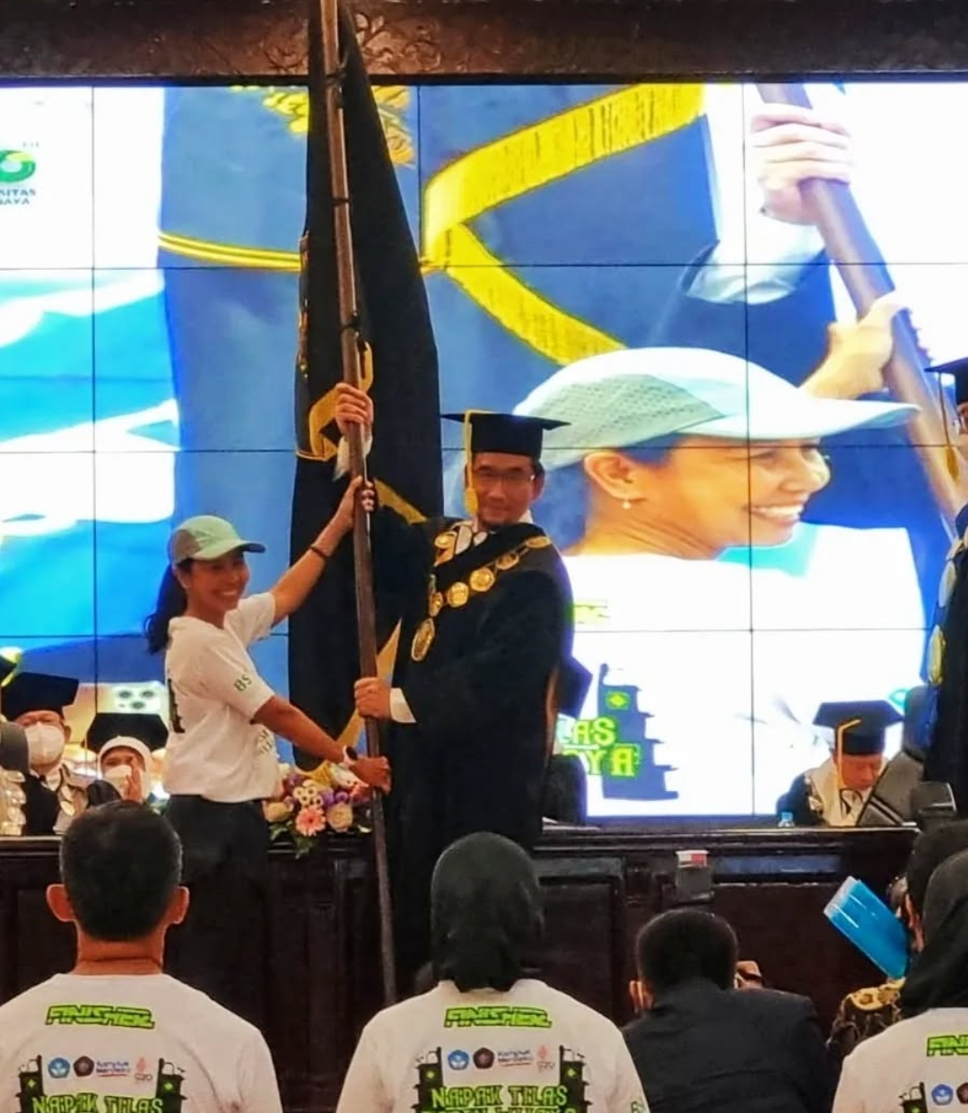 Endah saat menerima reward dari Rektor UB di ajang Lari Napak Tilas Raden Wijaya 2023--Instagram endah_purwa