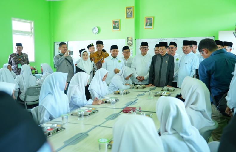 Menag Nasaruddin Umar saat meninjau pelaksanaan program MBG di PP Tebuireng, Jombang.-Kemenag---