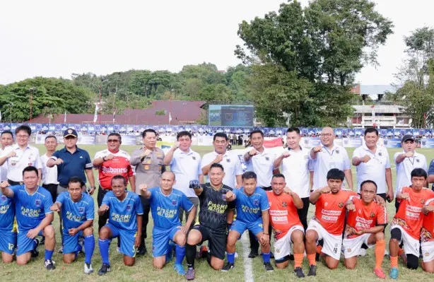 Para pemain PERSMA 1960 dan Persija Glory foto bersama sebelum pertandingan persahabatan, Rabu (12/11)--Istimewa