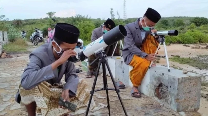 Ilustrasi kegiatan rukyat. Rukyat adalah bentuk ketaatan yang murni, sebuah pengalaman spiritual menatap tanda-tanda kebesaran Allah Swt di ufuk barat. -nu online--